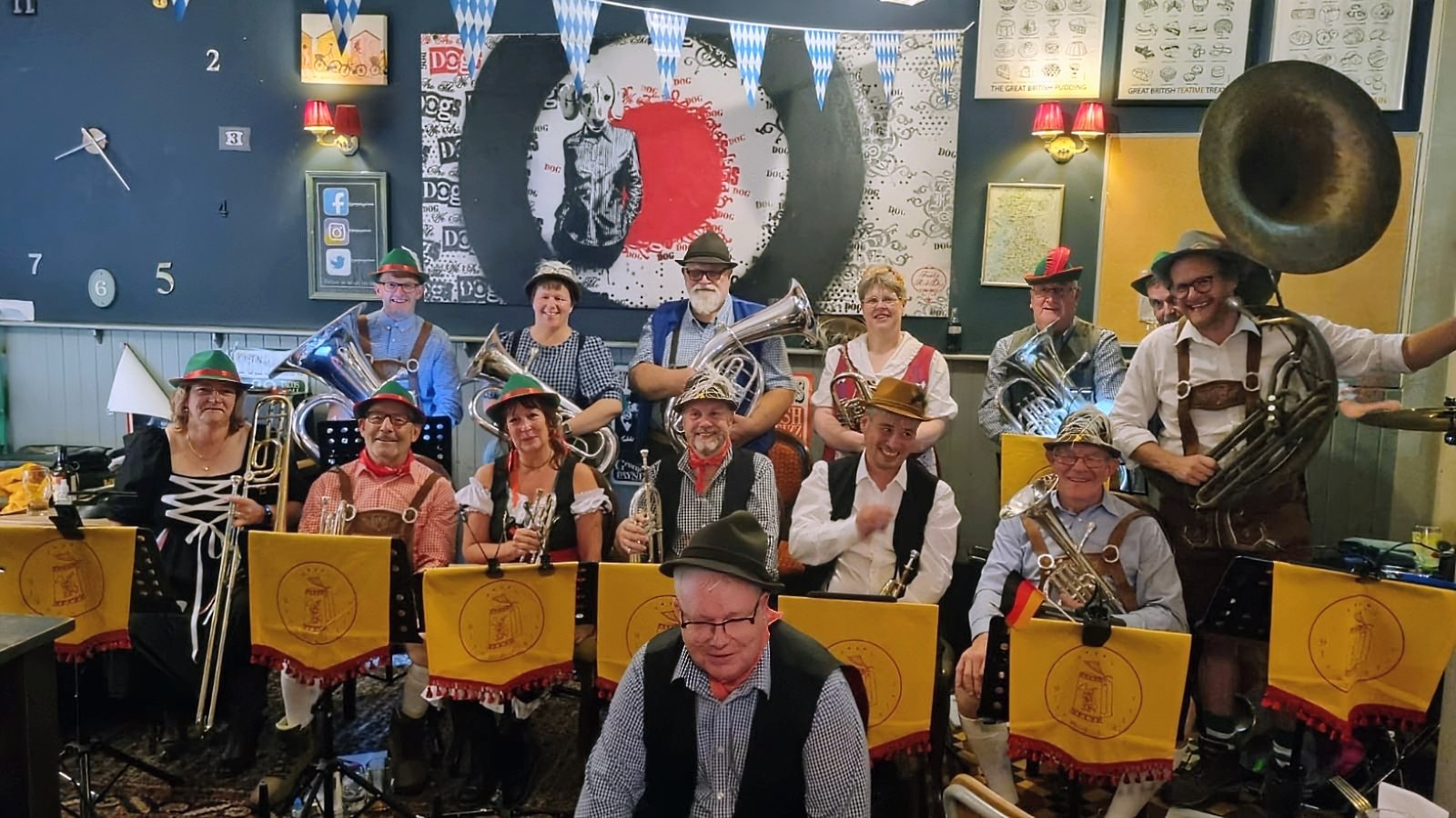 A number of our regular band members have formed a German-style oompah band called The Blasmeisters. They play in traditional dress and the emphasis is on fun! Why not have the Blasmeisters perform at your next party?
